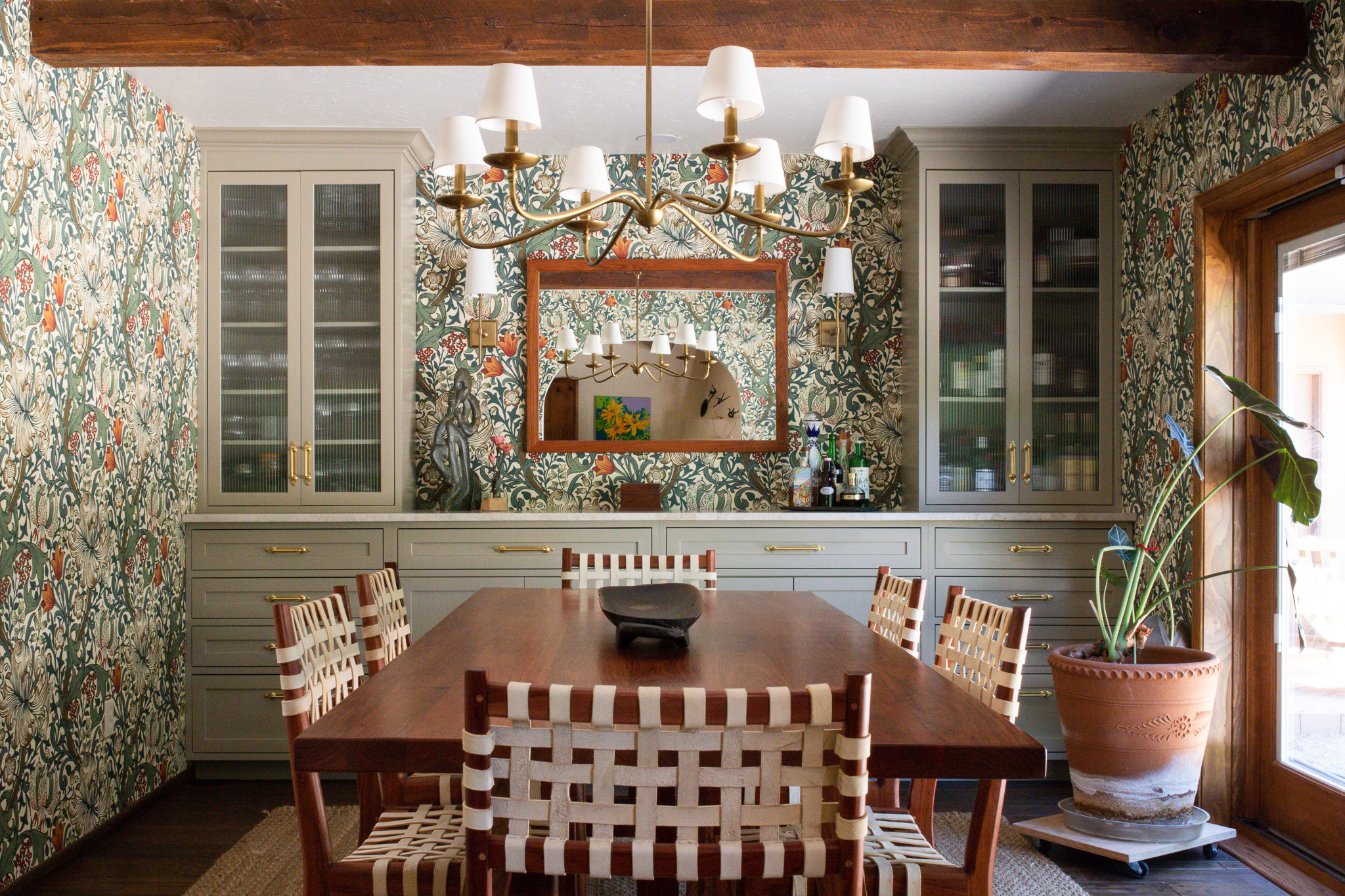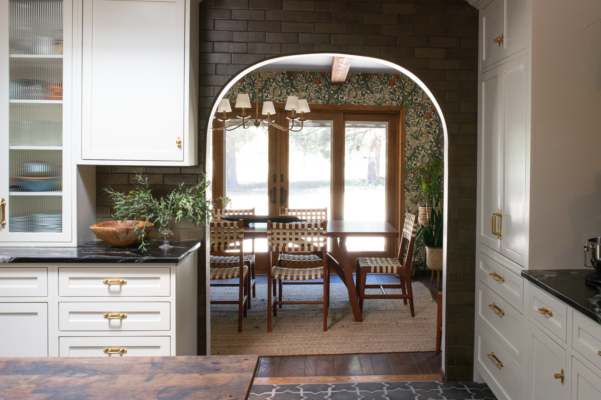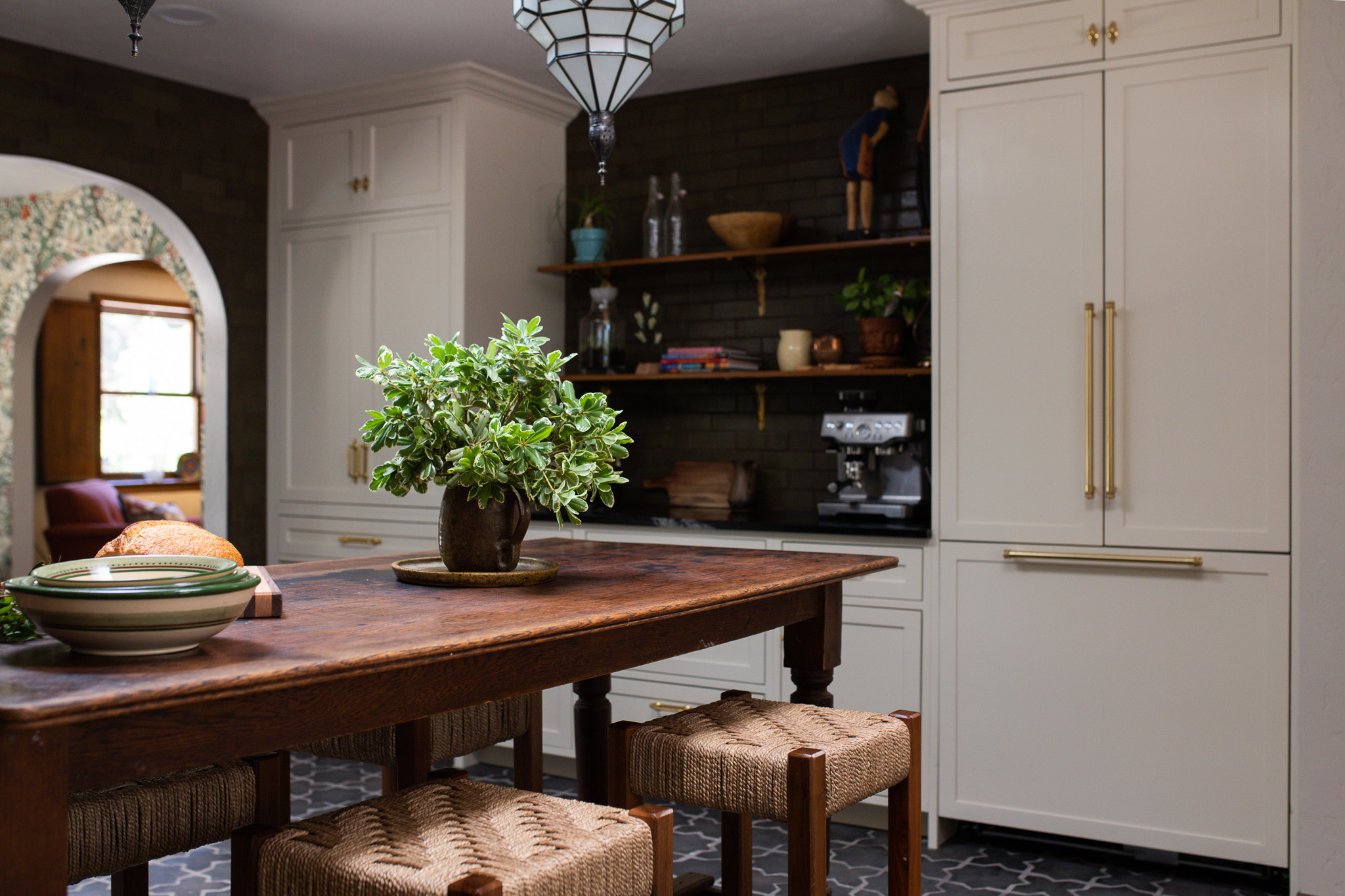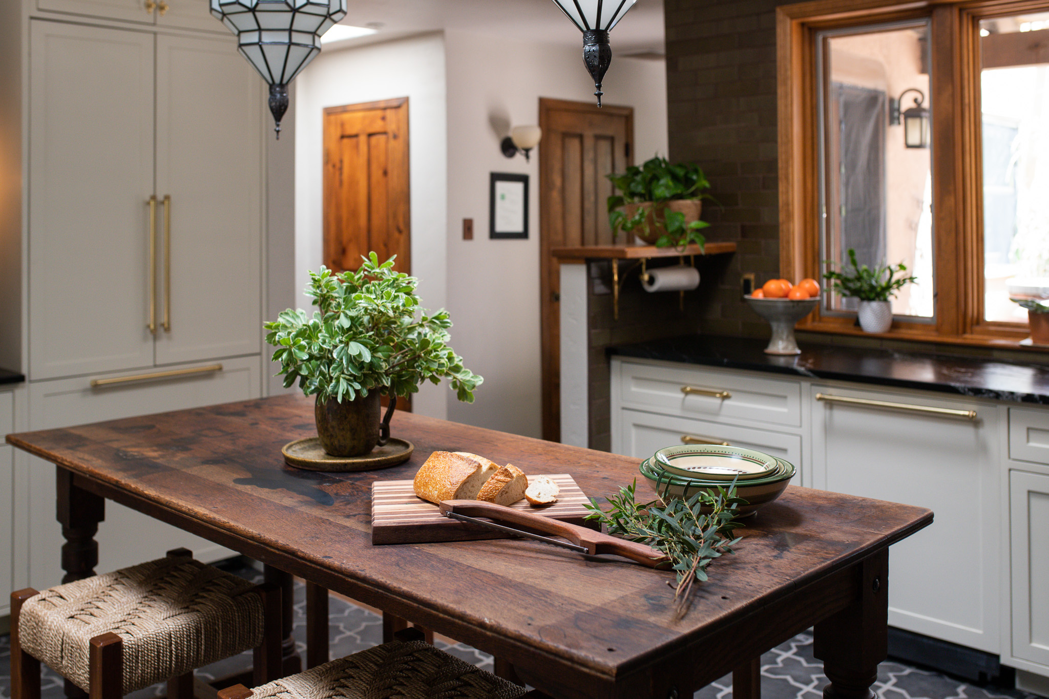 Tucked between pecan trees and sunbaked earth, this adobe-style home layers heritage architecture with a collected, global sensibility. Natural plaster, handmade tiles, and curated vintage finds bring a soulful rhythm to the space, where no two corners feel the same, and every object tells a story.”