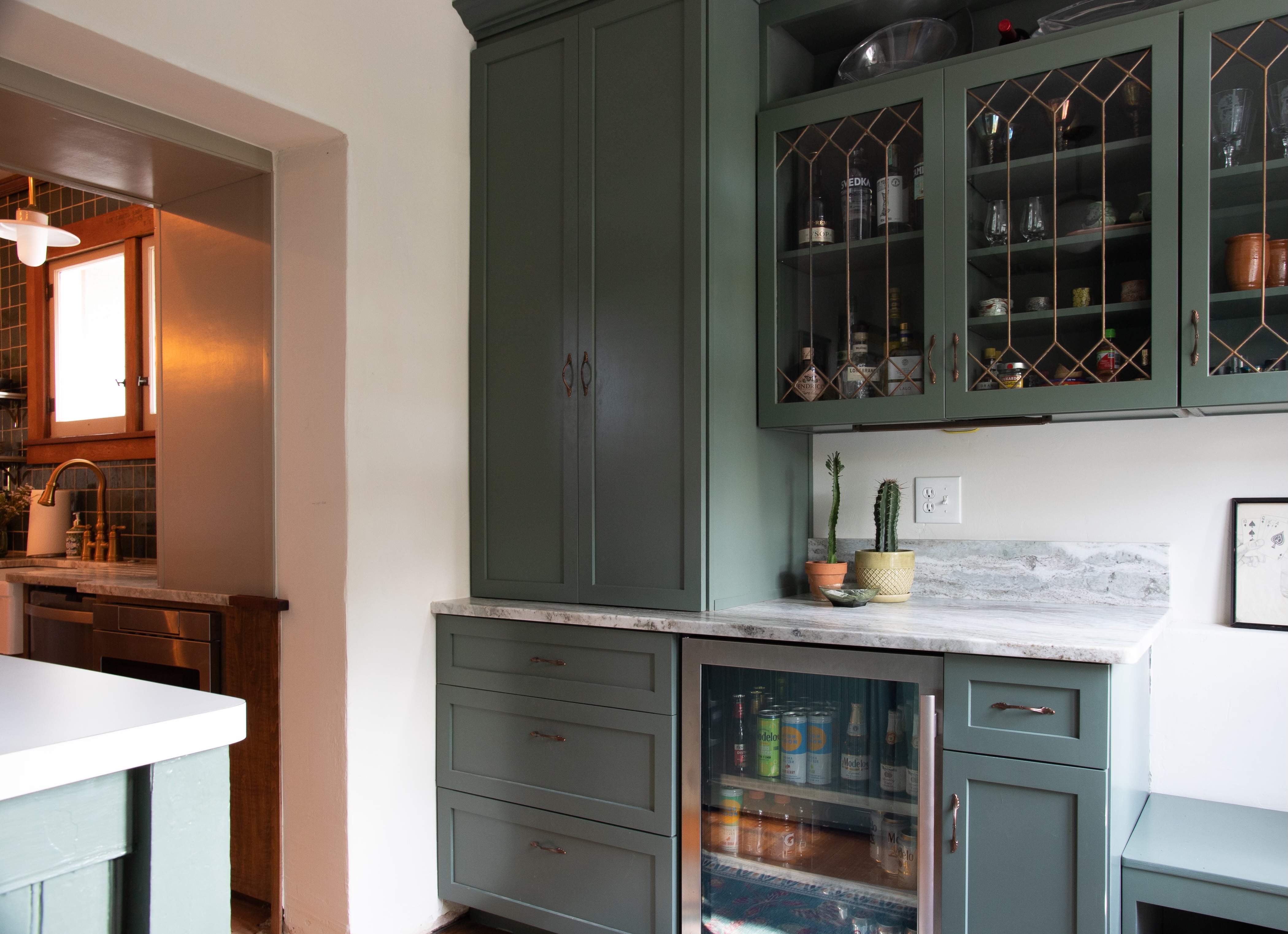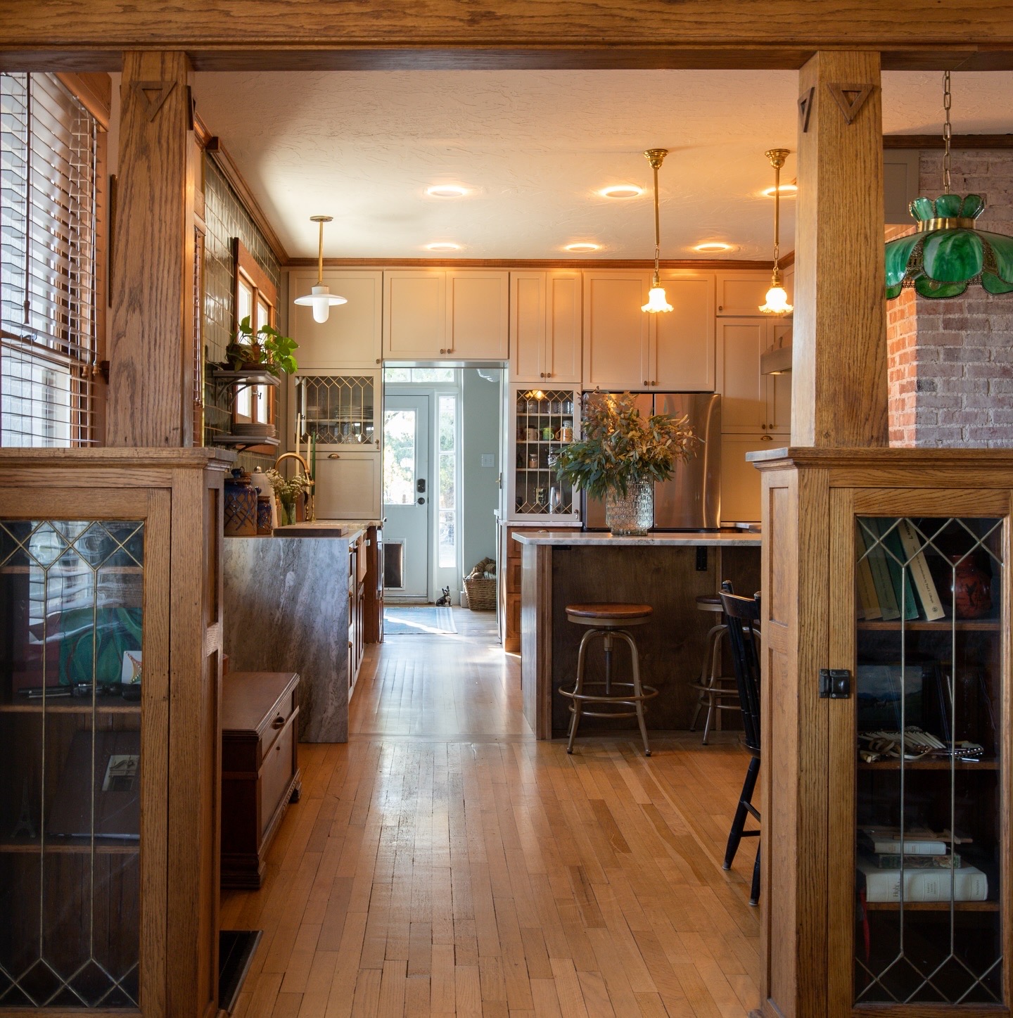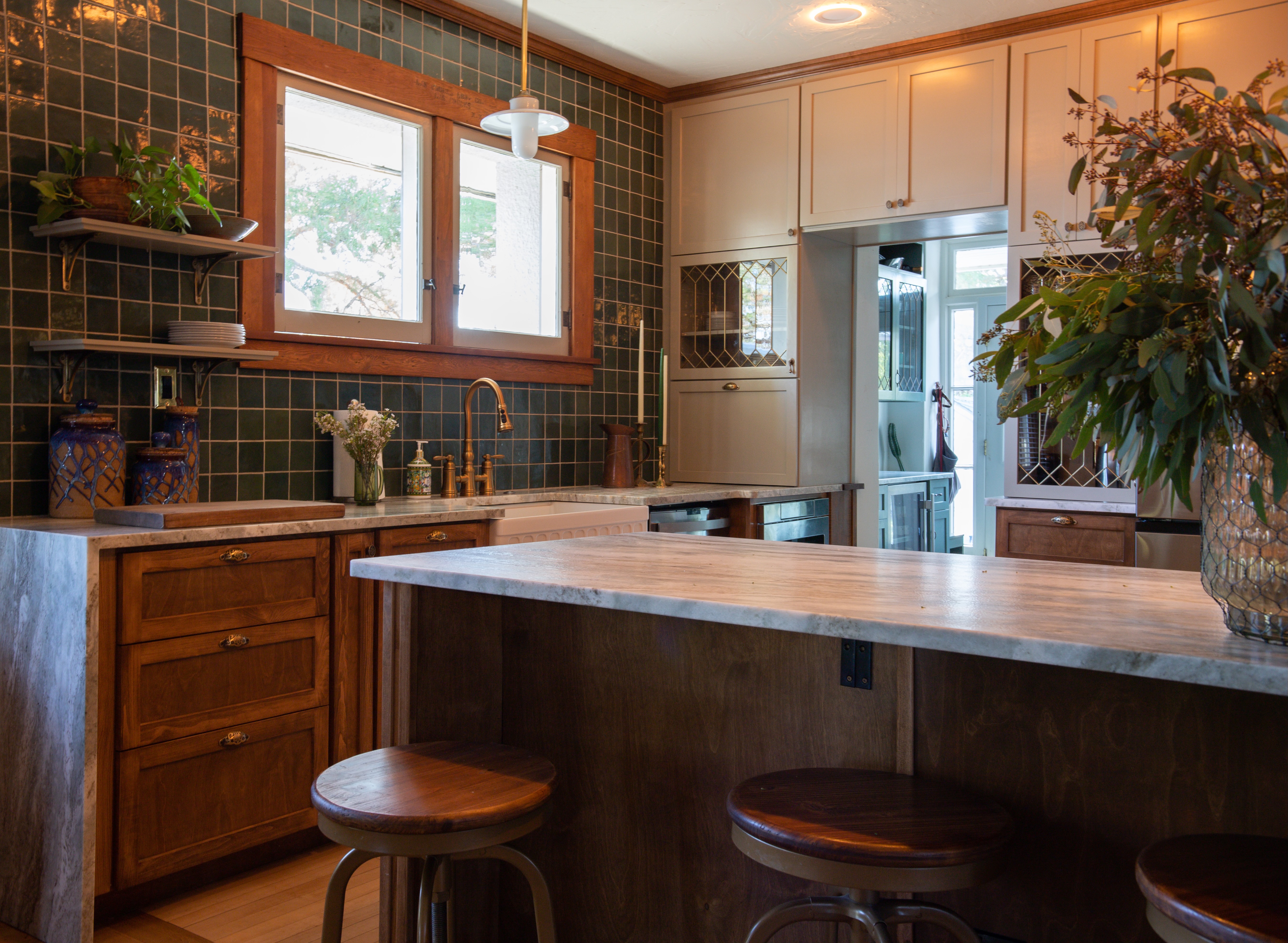 Located in the heart of historic Mesilla Park, this Craftsman-style home was a study in preservation. We leaned into the home’s original character, layering in color and texture while introducing new leaded glass elements that mirrored the past. Where others might modernize, we honored the soul of the home, celebrating its quirks, color, and craftsmanship.